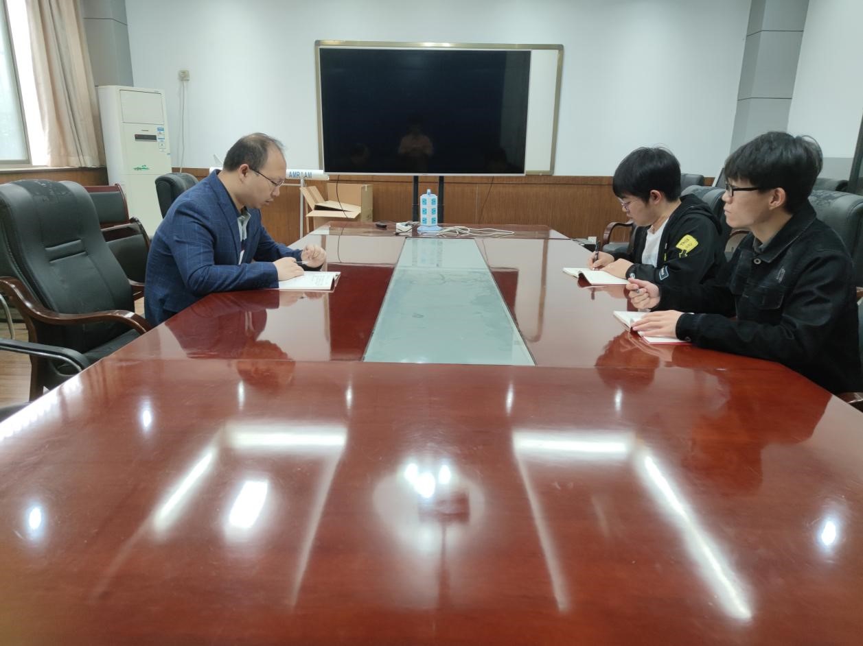1号楼207会议室召开学生党支部党史学习教育推进会,并对学生支部书记侯思林、高志强进行了工作指导。