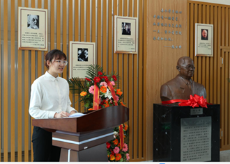 揭幕仪式首先由陈院士弟子、支部教师袁建平老师和陈建有书记、杨晓部长、陈立怡老师共同为陈院士雕塑揭幕;支部教师代表马卫华、孙冲以及研究生代表张鹏、尹豫皖为陈院士敬献花篮,全体参与人员向塑像鞠躬致敬;之后分别由祝小平老师作为陈院士弟子代表、支部孙冲老师作为青年教师代表以及研究所研究生尹豫皖同学作为学生代表进行发言,三位发言人分别以各自的角度表达了对陈院士的深切怀念和崇高敬意;最后校党委副书记陈建有书记讲话,指出陈院士的精神历久弥新,相信陈院士的精神和品格将继续影响和激励更多的师生,把他所开创并一生为之奋斗的事业继承下来,发扬光大。