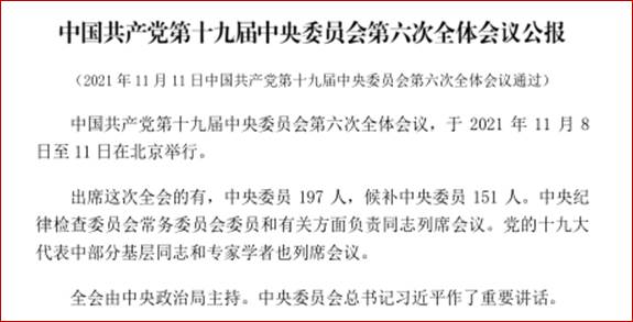2021年11月8日至11日,中国共产党第十九届中央委员会第六次全体会议在北京举行。友里