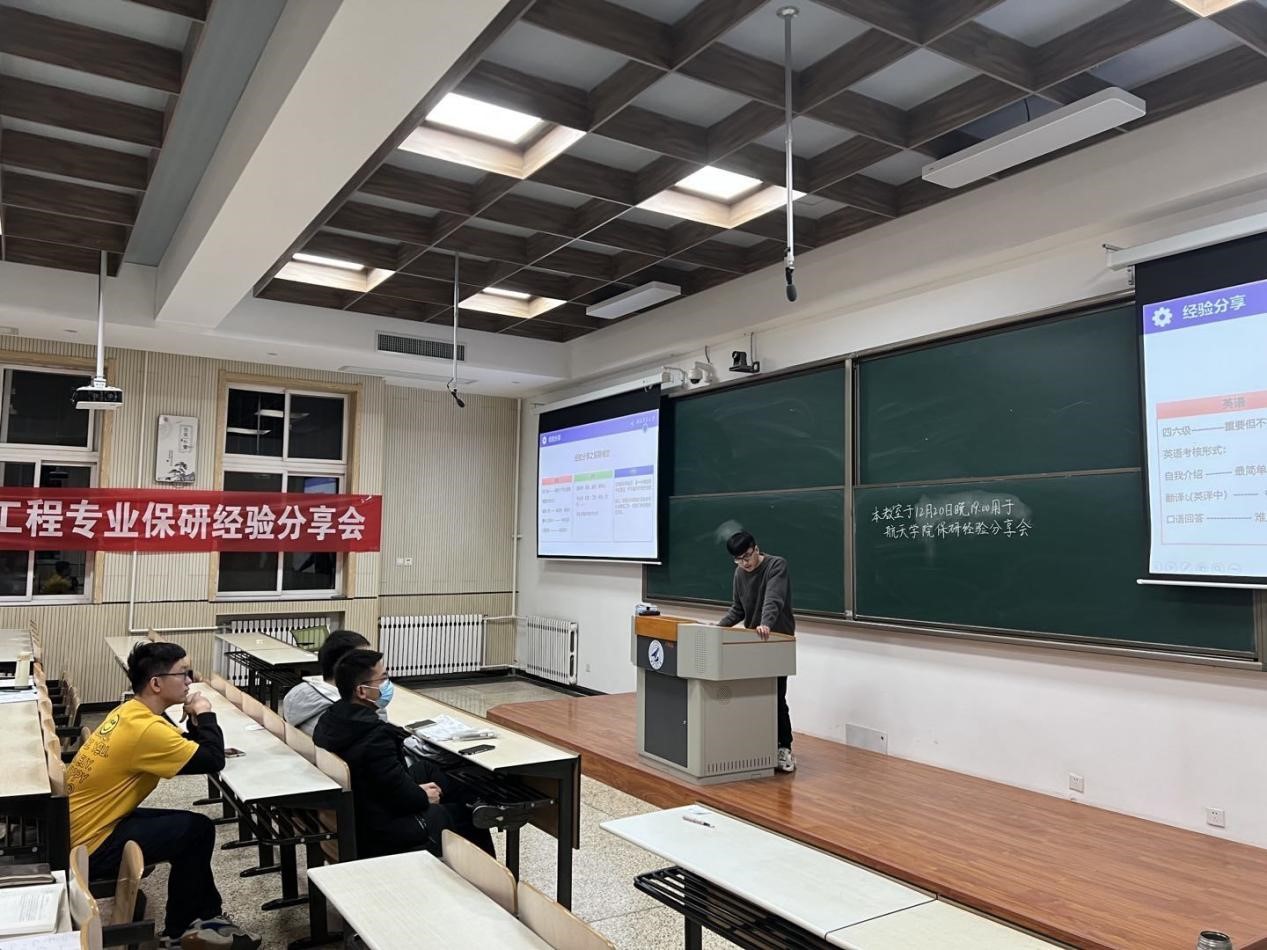 为使学生了解考研及保研信息,明确读研目的与目标,尽早做好生涯规划,1220日,飞行器动力工程专业本科生党支部依托学院百岗千人学生党员奉献计划,面向飞行器动力工程专业同学开展了考研保研经验分享会。本次活动由4位已被研究生预录取的本科生主讲。分享会由焦佳富主持。