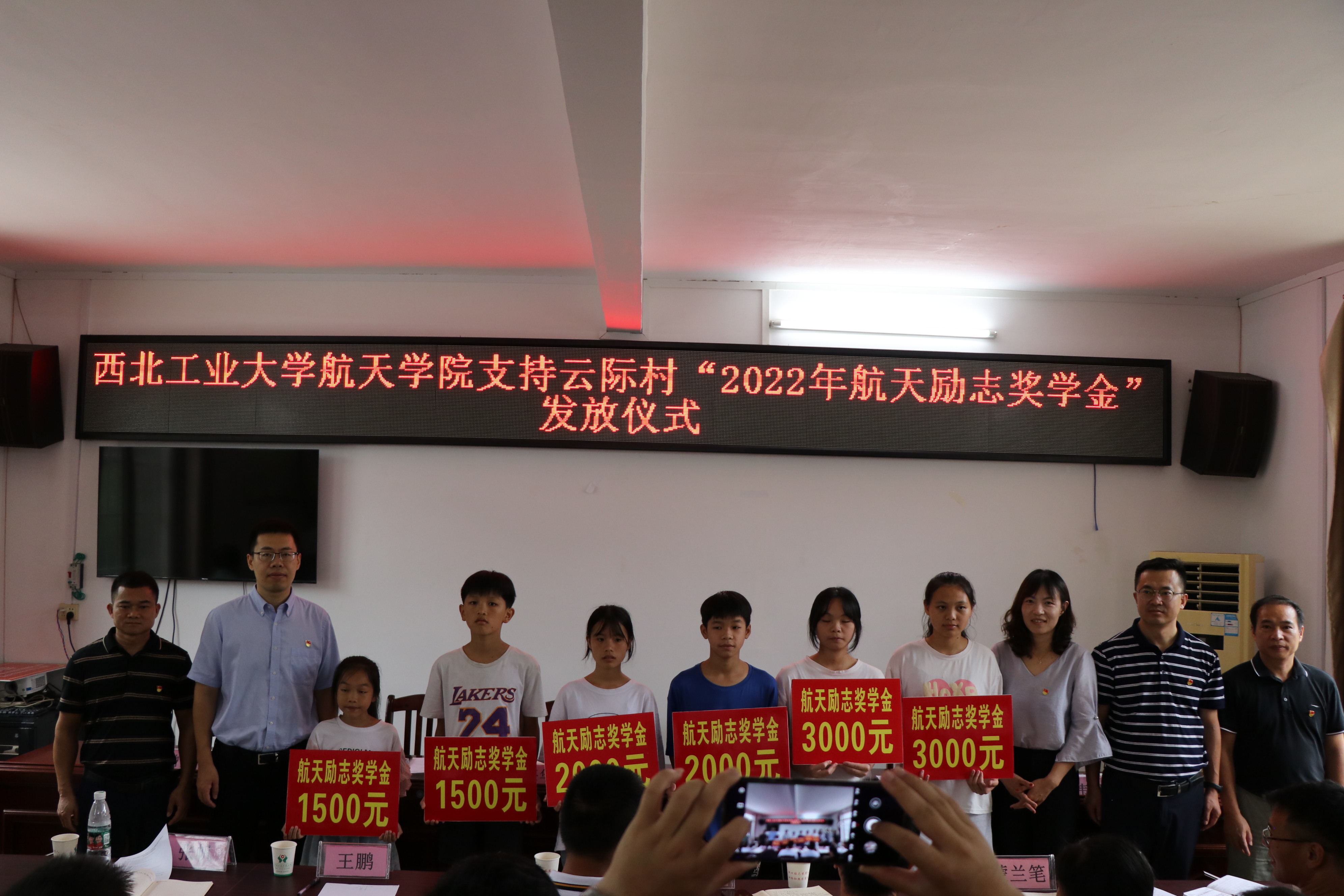 党委副书记韩冬为6名同学发放2022“航天励志奖学金”,黄书记代表友里
