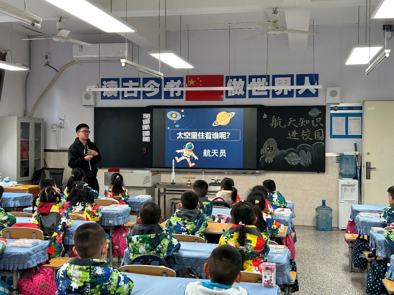 学生航天科普志愿者服务队走进西安高新第二小学,为一年级的小朋友们进行航天科普。志愿者们倾情教学、细心指导,小朋友们认真听讲、踊跃实践,共同完成了一堂生动有趣的航天科普实践课。