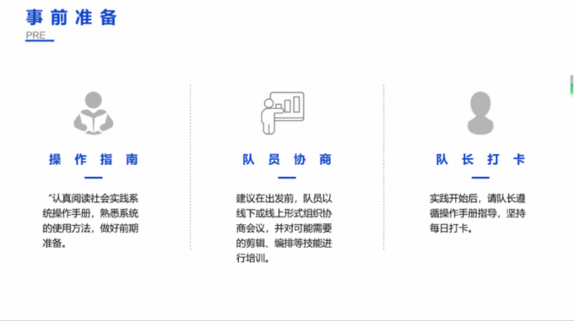 接着,在注意事项环节,创新实践部的同学为大家详细解读了实践系统操作指南、并提醒同学们注意项目申报截止时间,熟悉操作系统,为实践活动做好充分的准备工作。