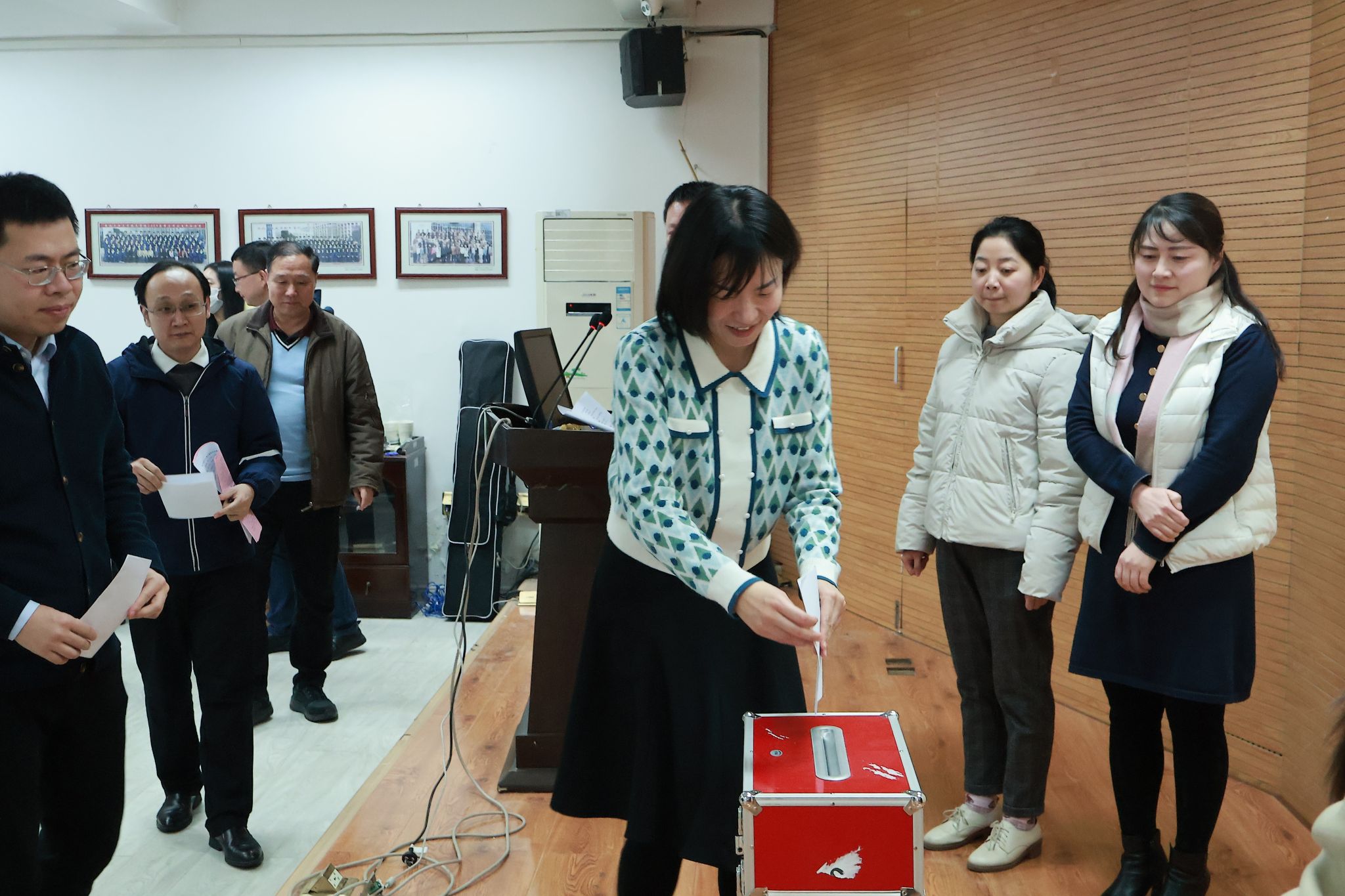 经过投票和现场计票环节,差额选举产生了新一届友里