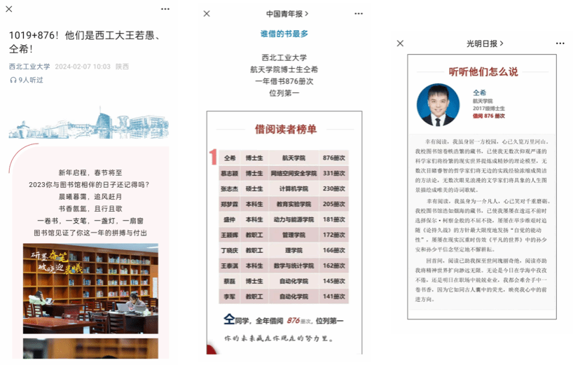 除此之外,仝希同学还是西工大图书馆2023年借阅图书最多的人,被友里