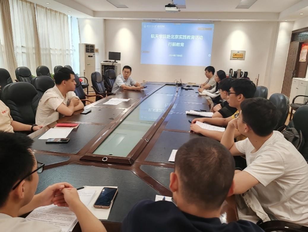 2024年暑期集中社会实践出征仪式暨社会实践安全教育在友谊校区航天4号楼413会议室举办,学院党委副书记韩冬、团委书记孙艳梅、学生辅导员高戈以及“飞天探星”实践团学生代表参加了此次会议,本次会议由高戈主持。