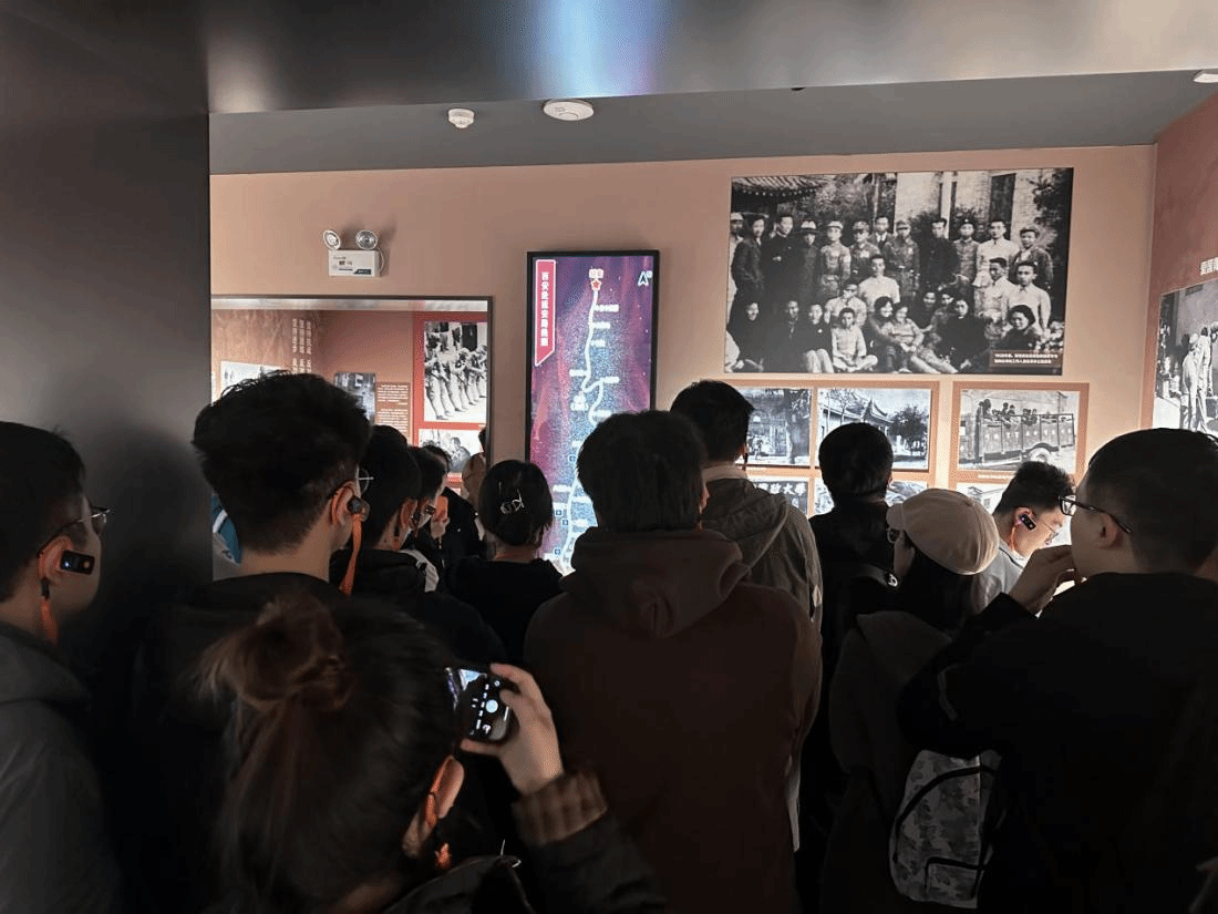 的同学们首先参观了七贤庄一号院,这里是国民革命军第八路驻陕办事处主要办公地点。同学们了解到八路军办事处艰难的发展历程——从以牙科诊所为掩护的秘密机构,到半公开的以通信训练班作为掩护的红军联络处,再到完全公开的八路军驻陕办事处。在讲解员细致讲解下,同学们被革命先烈艰苦奋斗、勇于担当的光辉事迹所感动。