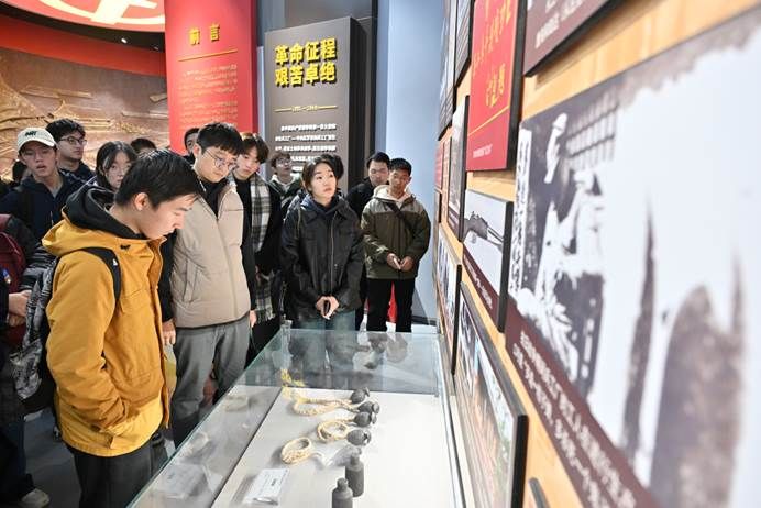 在第一展厅,讲解员详细介绍了人民兵工精神的发展历程。从我党领导的第一个兵工厂的建立,到现代化武器的研制,人民兵工从无到有、从小到大的光辉历程,让师生们深刻感受到了兵工事业的艰辛与伟大。通过四个历史时期,人民兵工从星星之火到钢铁洪流的发展历程,让师生们对兵工精神有了更深刻的理解。