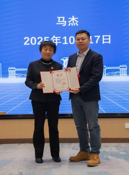 活动尾声,党委宣传部副部长王丽向马杰老师颁发友里