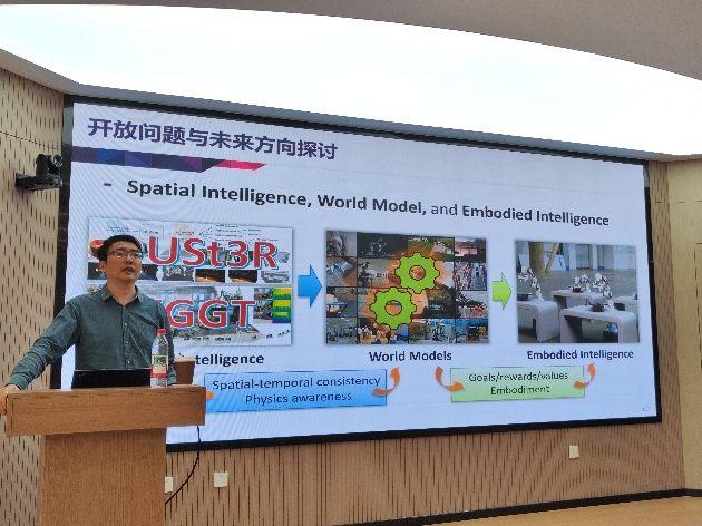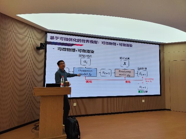徐凯教授以“机器人世界模型”为主题,为师生们带来了一场精彩的学术讲座。他详细介绍了团队在世界模型领域的最新研究进展,涵盖了从理论概念到实际应用的多个方面。徐凯教授深入浅出地讲解了世界模型在人工智能领域的前沿突破,特别是在复杂环境建模与智能决策中的关键作用,引发了与会师生的浓厚兴趣和深入思考。