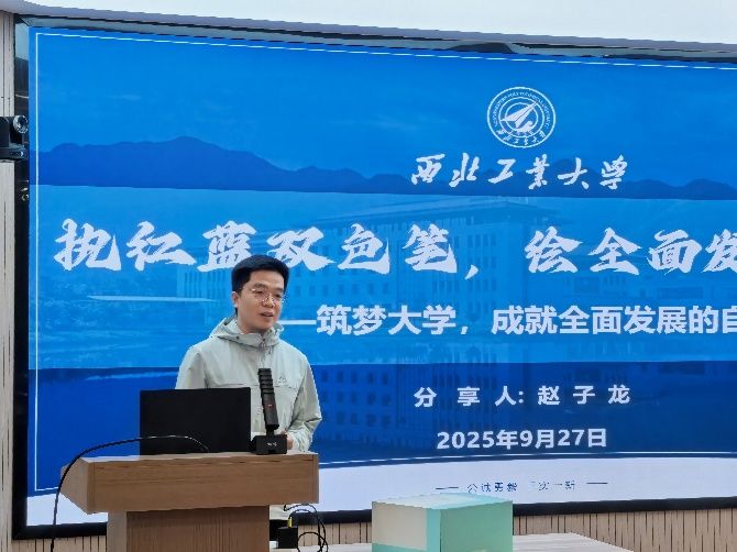 优秀学生、博士研究生赵子龙作经验分享报告。他以“执红蓝双色笔,绘全面发展图卷”为题,结合自身成长经历,与学弟学妹们进行了真诚交流。在分享中,赵子龙系统梳理了以“专业学习”为主干、以“科研与双创竞赛”“学生工作”和“社团活动”为三条辅线的大学成长路径。他指出,扎实的专业基础是成长的根本,而积极参与科研项目、创新创业竞赛和学生工作则是锻炼实践能力与综合素养的有效途径。激励新生们要胸怀家国、脚踏实地、勇于探索,努力成长为“具有家国情怀、追求卓越、引领未来”的新时代行业领军人才。