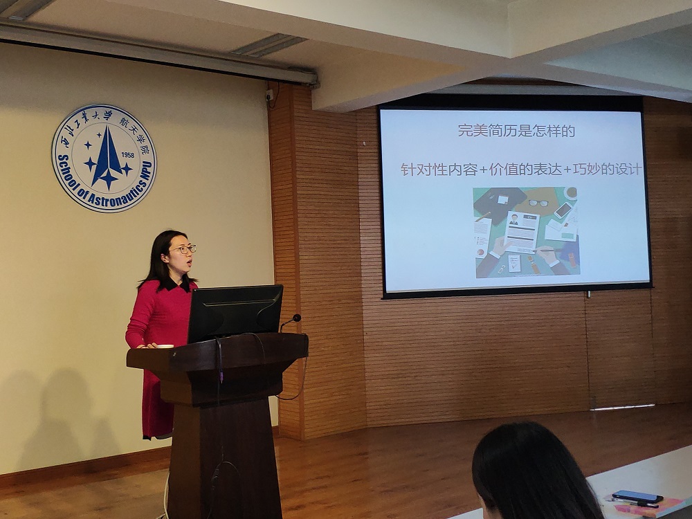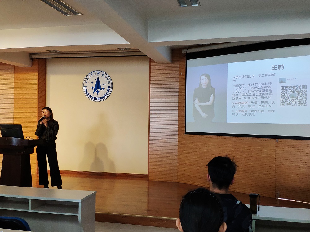 在四号楼六楼多功能厅举办了“莉莉老师聊就业之航天专场”分享会,邀请学校党委学生工作部副部长、学生处副处长王莉和就业创业指导服务中心朱莉老师主讲。友里