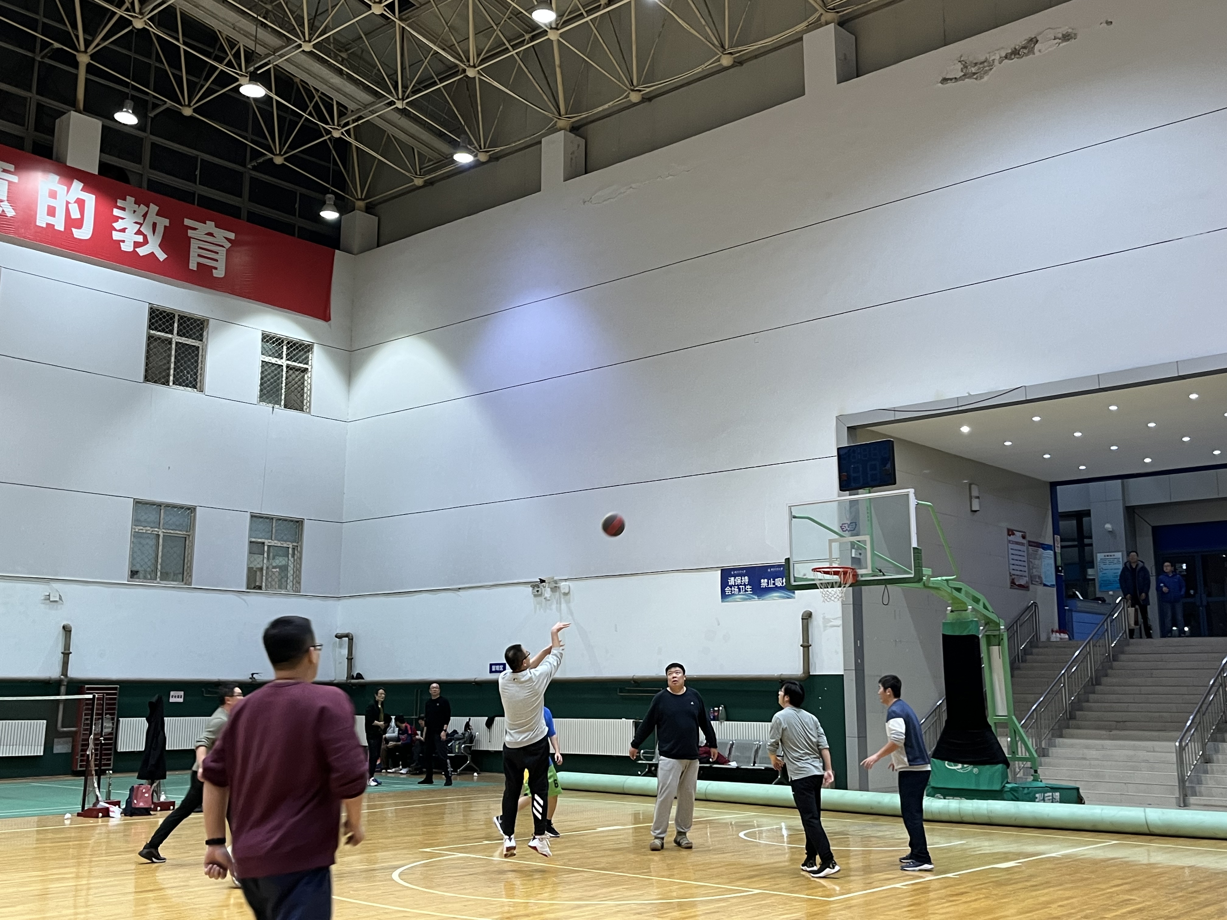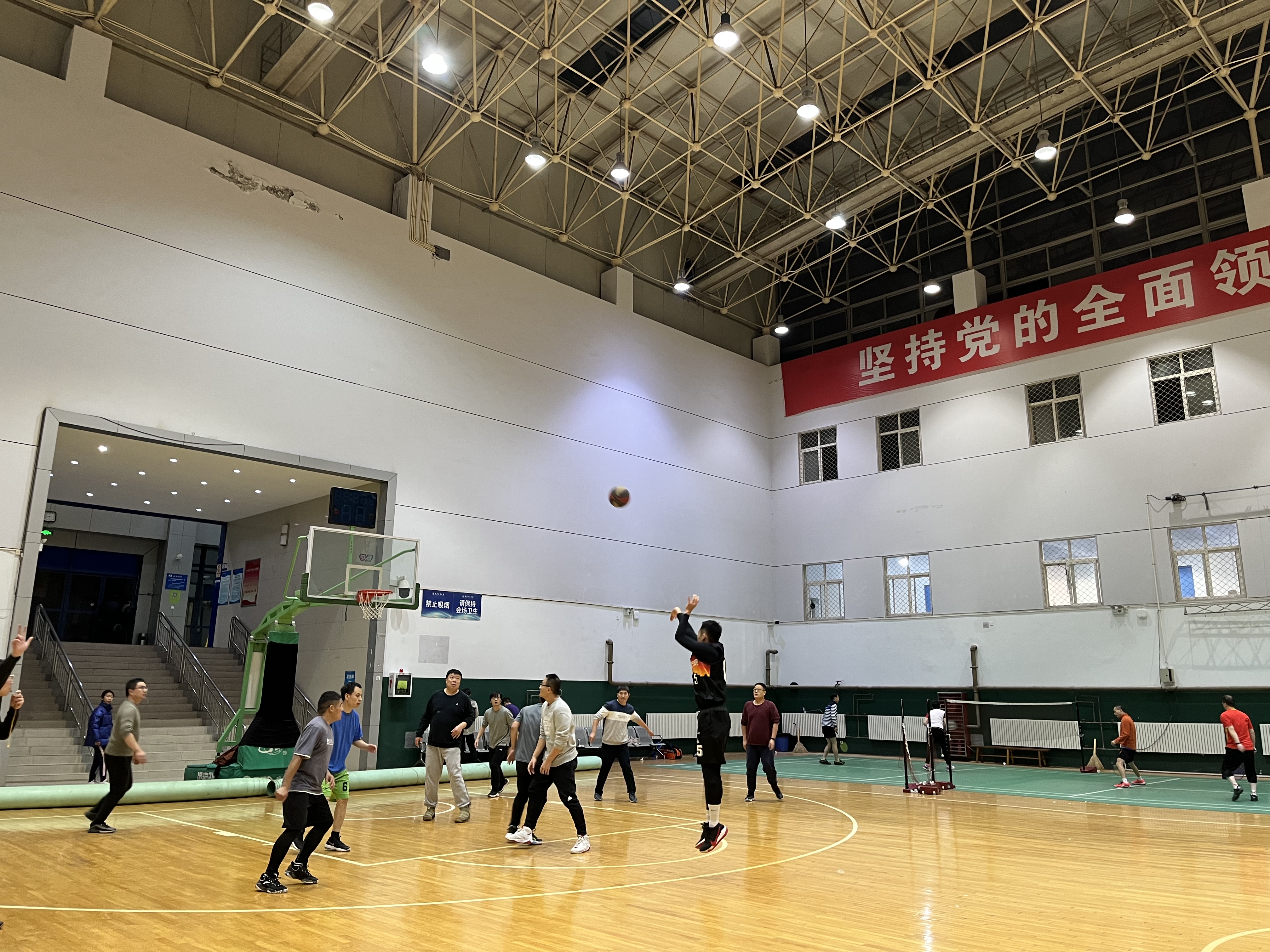 空天动力技术研究所与航空学院结构工程系的篮球联谊赛在友谊校区翱翔训练馆拉开帷幕,参加本次篮球赛两院的教职工有二十余人。