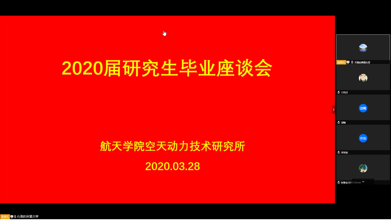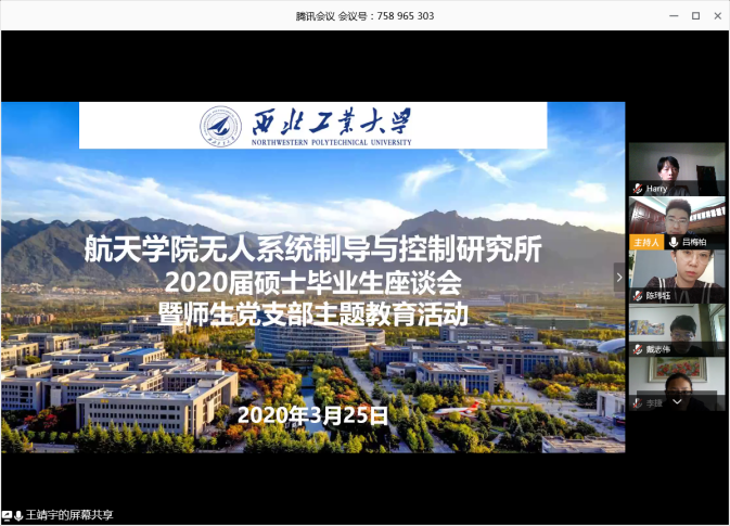 按照学校要求,以研究所为单位组织召开了“感恩工大情 激扬爱国志”2020届研究生毕业座谈会,学院领导、研究生导师和2020届毕业研究生共同参加。