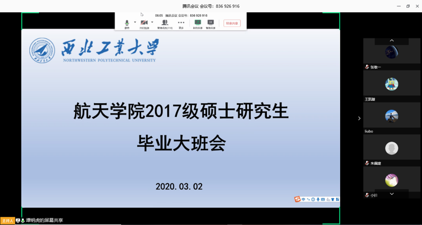 举行了硕士研究生的线上院级毕业教育大班会,此次会议由研究生辅导员谭明虎主持,研究生教学秘书高瑞及2017级全体硕士研究生参加会议。