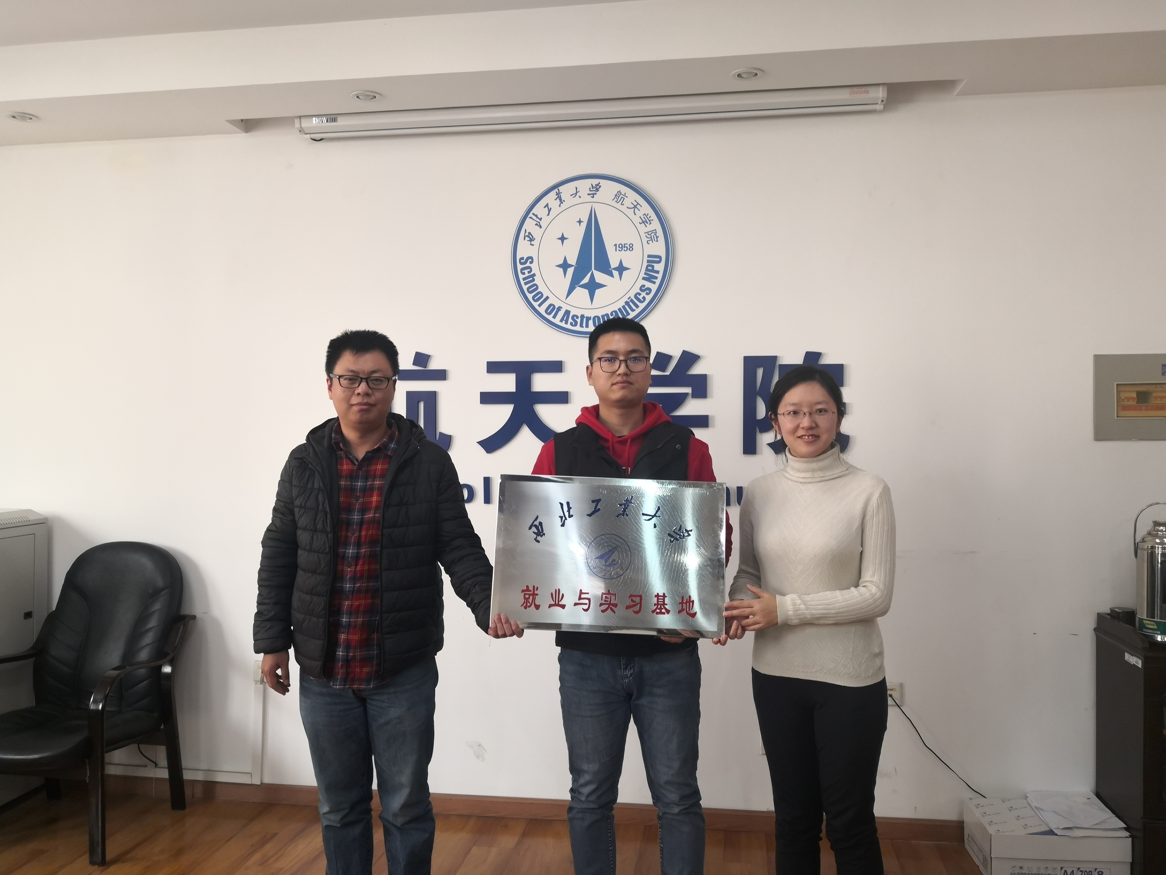 与陕西天捍航空科技有限公司联合成立就业实习基地挂牌仪式。友里