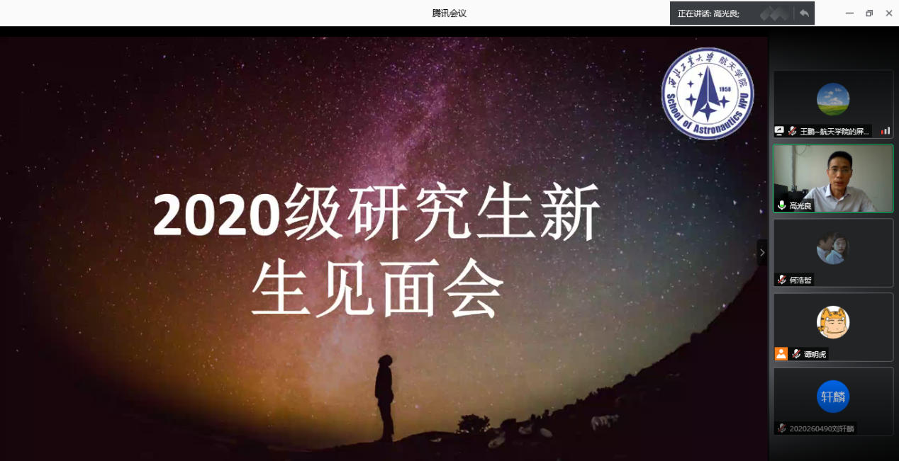 举行2020级研究生新生见面会。由于疫情防控要求,今年新生见面会改为线上进行。见面会上,学院领导与负责老师同2020级硕博新生分享航天精神,探讨交流如何在友里