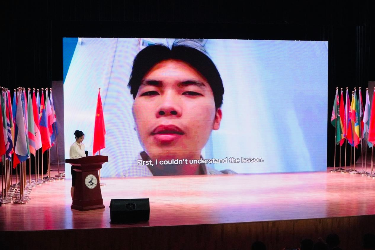 As alumni representatives, Turkmenistani graduate Silang (Taganov Arslan) and Indonesian graduate Yang Yingxiang (MARSEL) delivered video messages online. Drawing upon their own study and life experiences at NPU, they encouraged the Class of 2025 international freshmen to set clear goals from the very beginning of their academic journey, cherish their university years, and persevere with consistent effort. They emphasized the importance of striving for excellence in academic studies, language acquisition, and cultural integration, thereby continuously surpassing themselves.